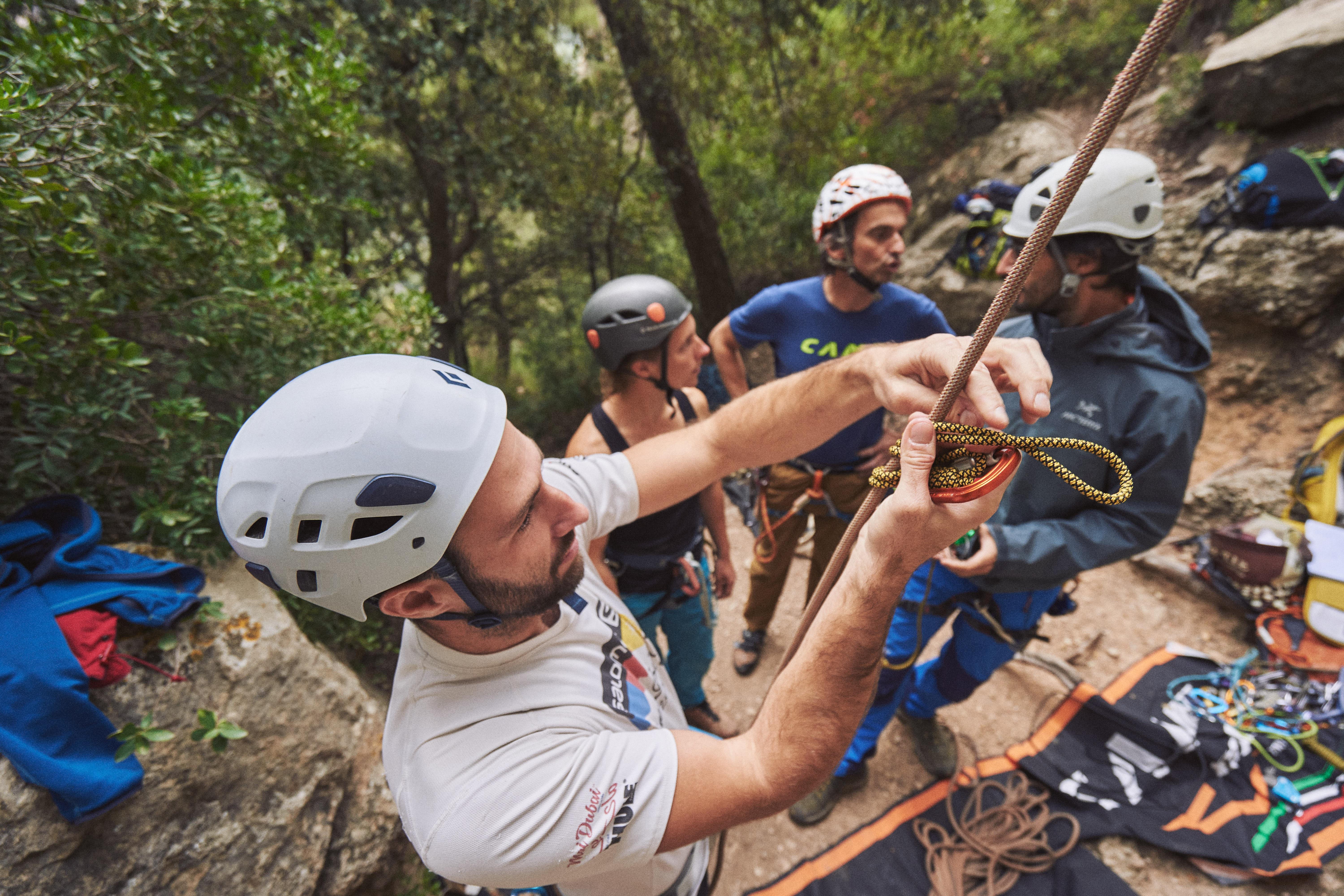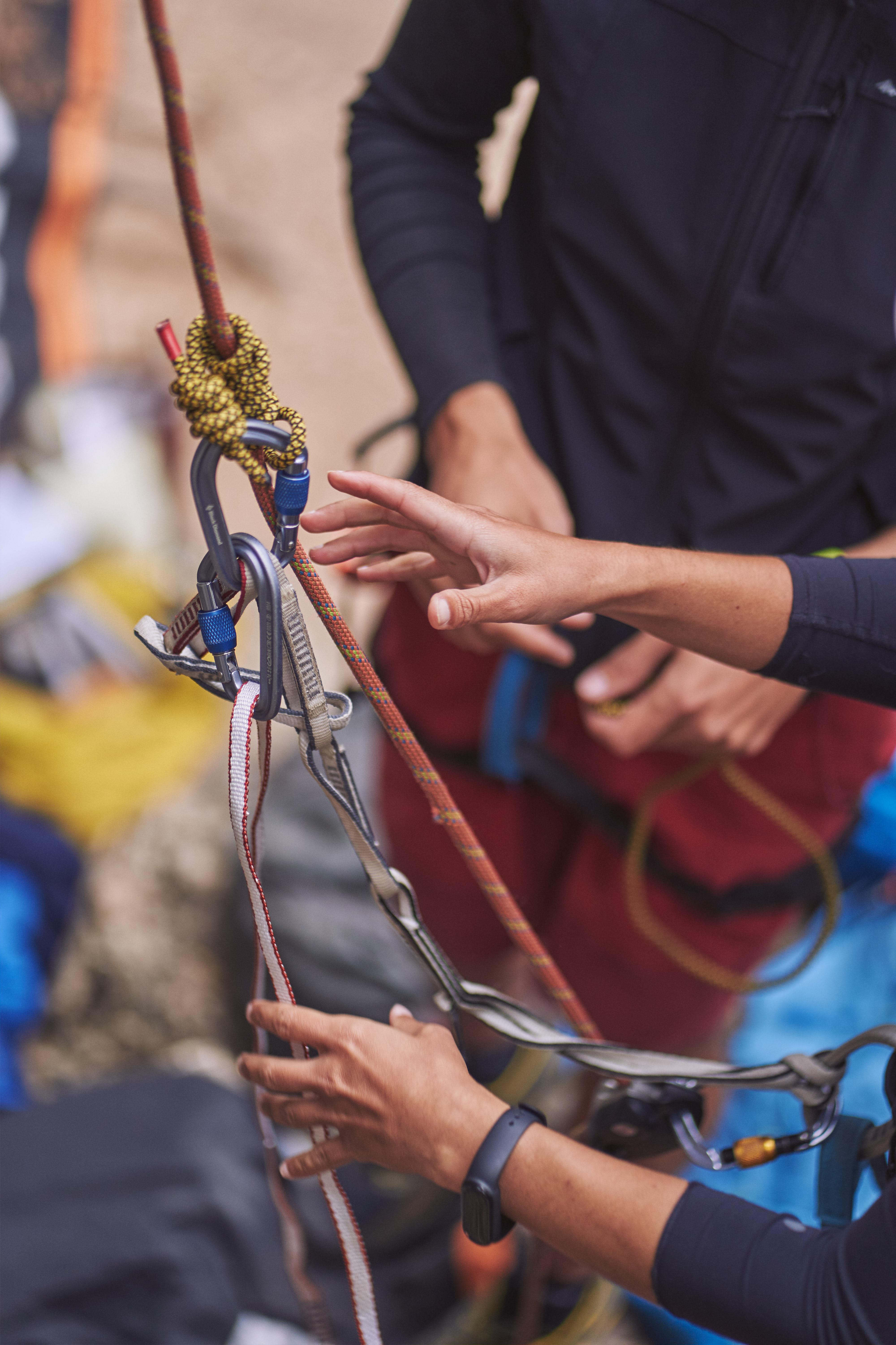 - Material: pies de gato, arnés, cintas, casco, cuerda, magnesio, comida y agua